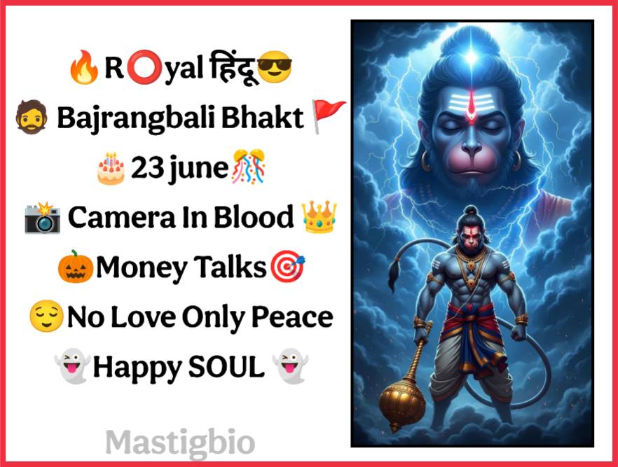 Hanuman Ji Bio For Instagram :- नमस्कार मेरे प्यारे मित्रों आपका स्वागत है एक और नए पोस्ट में, मैं आशा करता हूं कि आप एकदम स्वस्थ और मस्त होंगे। आज हमने आपके लिए हनुमान जी Instagram Bio लिखकर लिस्ट किए हैं, जो आपके इंस्टाग्राम बायो में एकदम मस्त दिखेंगे, क्या आप भी अपने इंस्टाग्राम बायो के लिए एक खूबसूरत स्टाइलिश Hanuman Ji Bio For Instagram in Hindi कि तलाश में है तो आपकी तलाश इस पोस्ट से पूरी हो जाएगी। आपको इस पोस्ट में वो सभी बायो मिलेगे जिसे आप अपने इंस्टाग्राम बायो के लिए ढूंढ रहे हैं।