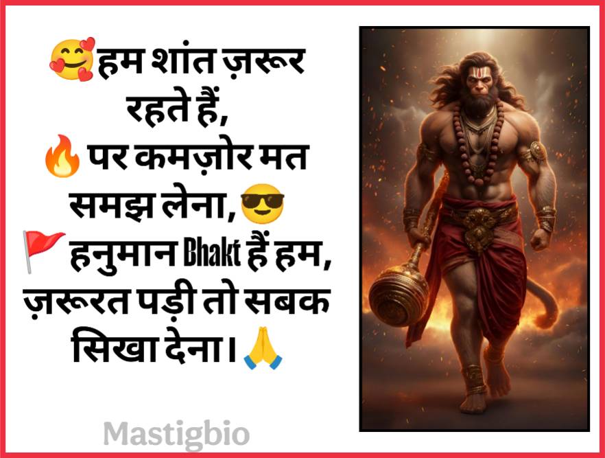 हमने यहां पर हमारे प्यारे मित्रों के लिए Hanuman Ji Bio का बेस्ट कनेक्शन शेयर किया हैं जिसमे यह सभी बायो शामिल हैं, जैसे की Instagram Bio For Hanuman Bhakt, Hanuman ji bio Sanskrit और भी अच्छे-अच्छे बायो आपको यहां पर मिलेंगे, आप इस पूरे पोस्ट को पढ़कर यहां से अपने मनपसंद के बायो को कॉपी करके अपने इंस्टाग्राम बायो में पेस्ट करके लिख सकते हैं।